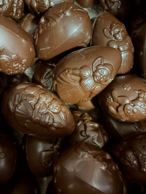 Webshop › Zoet, chocolade & dranken › Paaschocolade › Eitjes 8 cm fondant chocolade per 100 gr