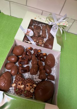 Webshop › Zoet, chocolade & dranken › Paaschocolade › Pattiseriedoosje gevuld met lekkers in fondant chocolade