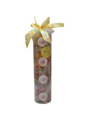 De snoepjestoren wordt mooi verpakt en volledig klaar om te schenken geleverd.