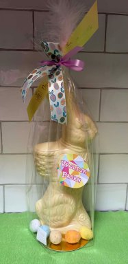 Webshop › Zoet, chocolade & dranken › Paaschocolade › Staande haas wit & kieviteitjes